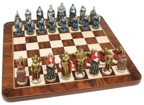 King Arthur's mystical kingdom comes alive with this chess set! The intricately handpainted chessmen will captivate the imagination of players young and old alike. You will want to display this beautifully crafted chess set for all to admire! Chess is not just any old game. It is one of the most revered board games ever to hit the market. Not only is chess a fun and exciting way to compete against your rivals, it also offers a numerous array of intellectual benefits. Chess increases memory and develops concentration. It encourages imagination and creativity. Chess is also known to improve student's schoolwork and grades. Various studies have demonstrated that students acquire higher reading and math levels, and just an overall superior learning ability as an effect of playing chess. In fact, chess is part of the required curriculum in countries all over the world! A game for people of all ages. Learn to play at any age and unlike other sports, you don't ever have to retire. Age is never a factor when you're looking for an opponent. The young can play the old and the old can play the young. Chess is a game that brings enjoyment to its players while exercising their intellectual abilities. Read more...