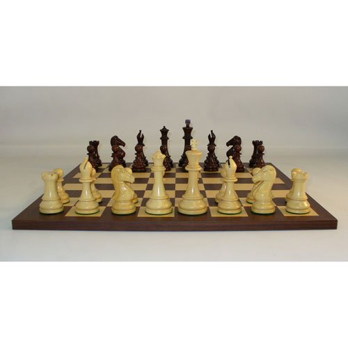 Attractive wood components and superior construction make this chess set an elegant addition to any home game collection. This game set includes New Classic style rosewood double weighted chessmen with a 4in King. The handsome dark rosewood and maple chessboard compliments the natural tones of the striking rosewood pieces. Read more...